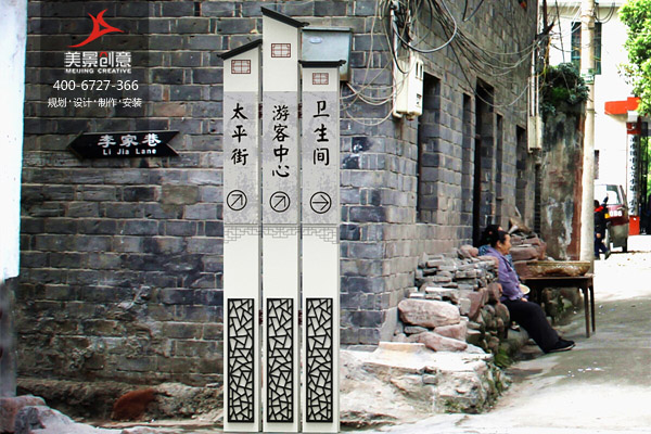 此前,美景创意与泸溪县浦市经济开发区管理委员会签约订浦市古镇导视系统制作合同。浦市古镇位于湖南省泸溪县,是中国历史文化名镇,有“小南京”之称。美景创意在为浦市古镇设计导视系统上,着重体现古镇的历史厚重感,使导视系统与古镇文化完美结合。景区导视系统是游客参观景区不可或缺的一部分,因此导视系统的导向、美观、与景区特点的融合程度是非常重要的。美景创意认为好的标识就像一个无声的专业导游、传情达意、让一山一石、一草一木都有机会被欣赏。而浦市古镇的导视系统设计,与古镇原有的文化、风情高度融合,为古镇的美丽锦上添花。