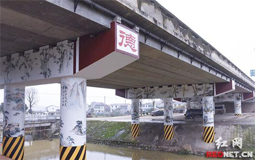 洞阳河的桥墩上,绘画上了国画,处处充满着文化气息